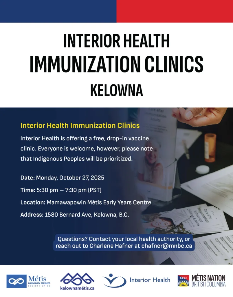 5:30pm to 7:30pm Drop-in vaccine clinic, everyone is welcome , Indigenous Peoples will be prioritiezed.