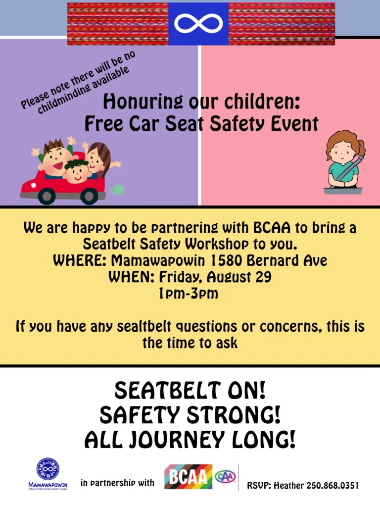 Please join us for this FREE safety session brought to you in partnership with BCAA. RSVP to Heather at 250-868-0351 or reception@mcsbc.org Location: 1580 Bernard Ave. Date and time: August 29, 2025 from 1-3pm